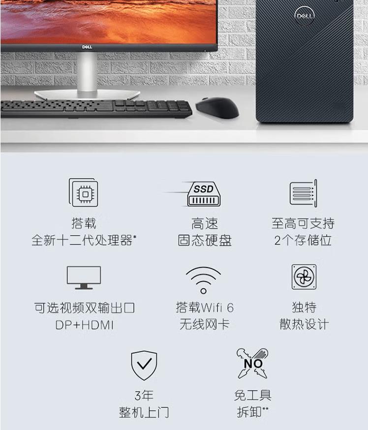 戴爾(DELL)靈越3910-18N6家用辦公學習網(wǎng)課娛樂臺式電腦主機12代i5 16G 256G+1T獨顯 加27英寸全高清顯示器(S2721NX)