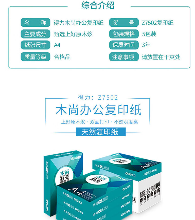 得力木尚 Z7502 A4復印紙 (5包裝)