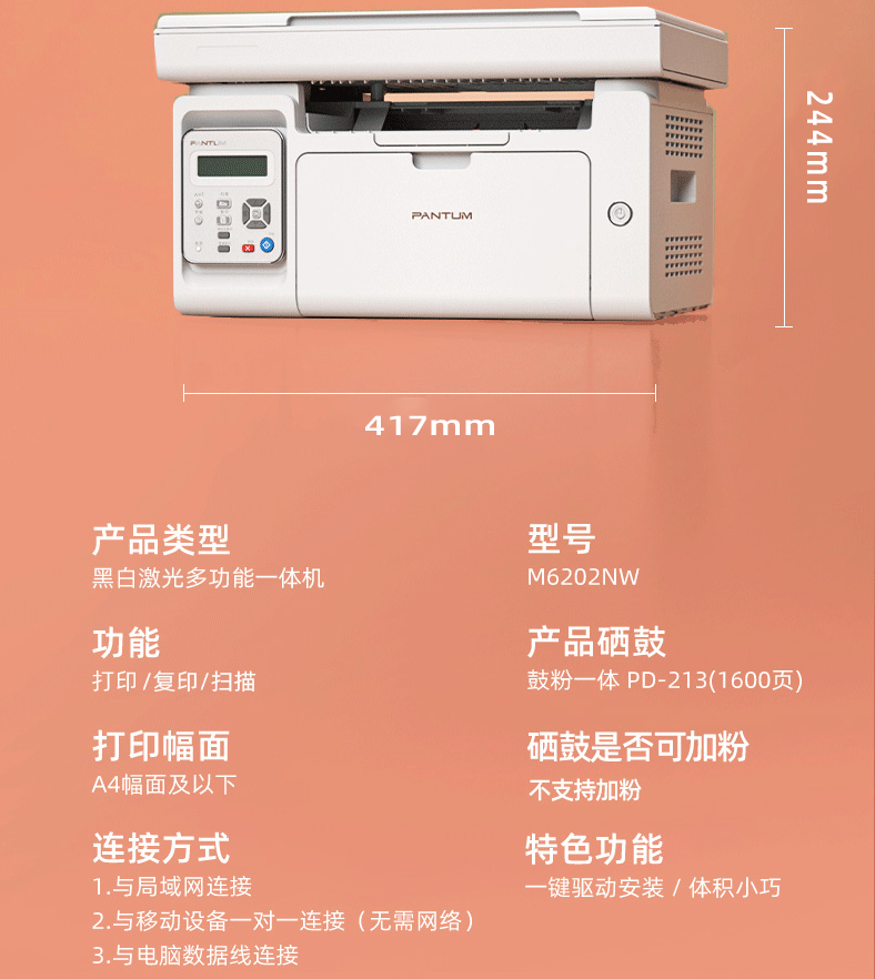 奔圖打印機(jī) M6202NW  打印/復(fù)印/掃描